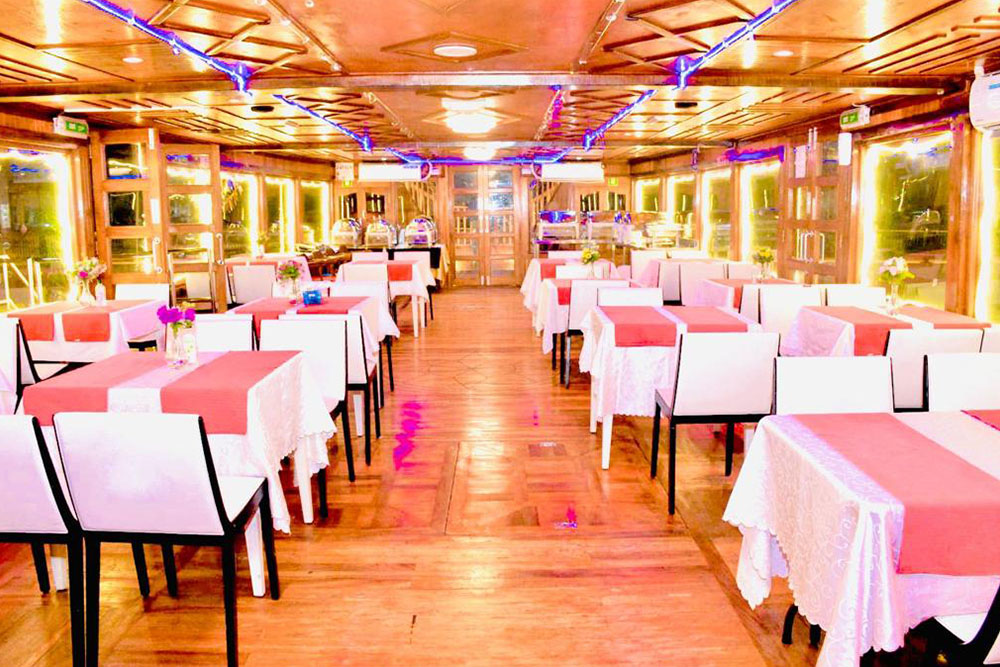 - Guests are served with delicious starters once the cruise sails. After that, delve into a sumptuous buffet dinner consisting of international savories while cherishing the surrounding marvelous views.