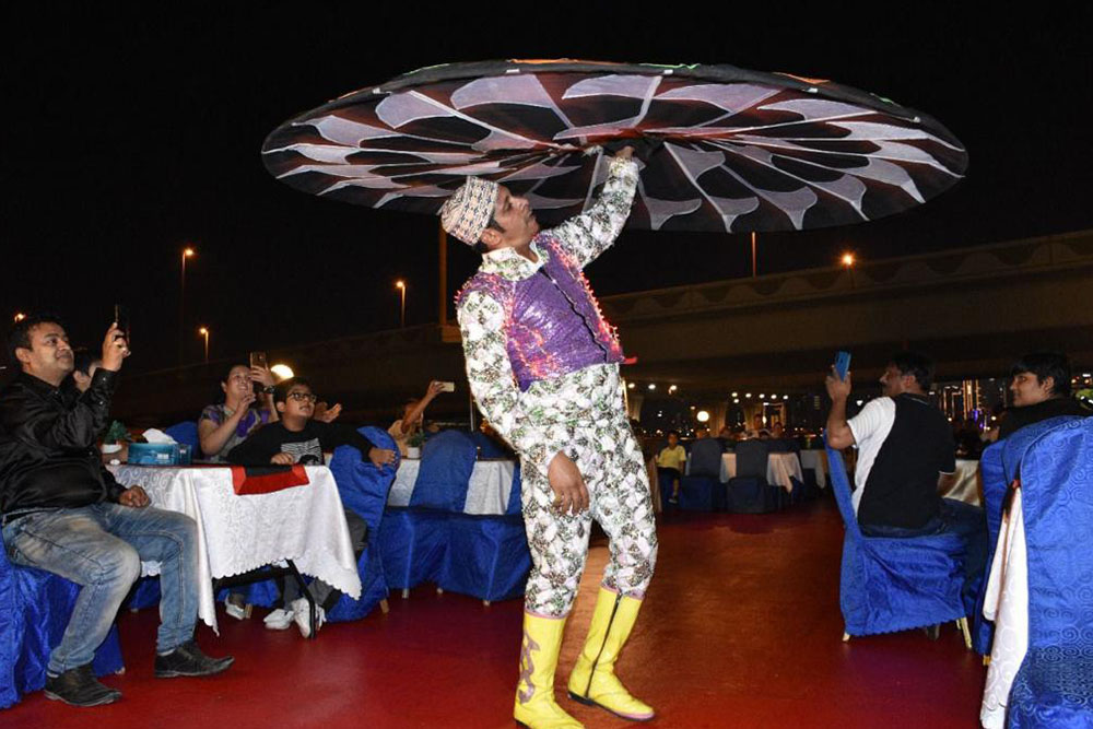 The staff on the cruise will welcome you with Arabic coffee and fresh dates. Besides, the huge lavish dinner buffet is also quite tempting. Hence, you can choose from non-vegetarian to vegetarian dishes, the variety is fabulous. Besides, the tour includes coffee, tea, welcome drinks, and drinking water.