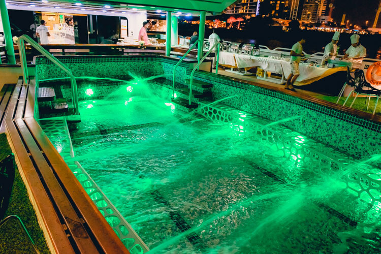 • The diverse onboard recreational activities will keep you entertained. In addition, the huge swimming pool, hydraulic canopy deck, and the private Jacuzzi add a whole lot of spice to the entire activity.